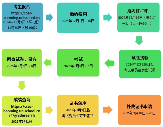 5. 如何申请证书补做?2025年3月10日—20日期间,一次性向考试委员会提出补做证书申请。证书补做仅限于本次考试和上一次考试的考生,逾期不予补做。